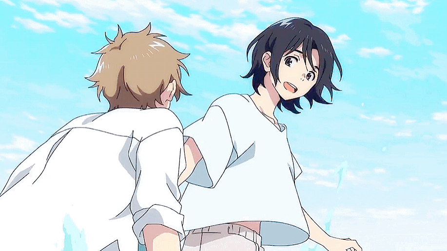 Looking at the world through Mio’s eyes, however, there is a contrast. Audiences see two presumed women together, then two men together; Mio sees the queerness of society around him unlike Shun, who only focuses on what he is not. Mio and Shun balance each other out in that they bring a coalescence of societal spaces together. Where does this coalescence occur? Why by the sea side of course.
