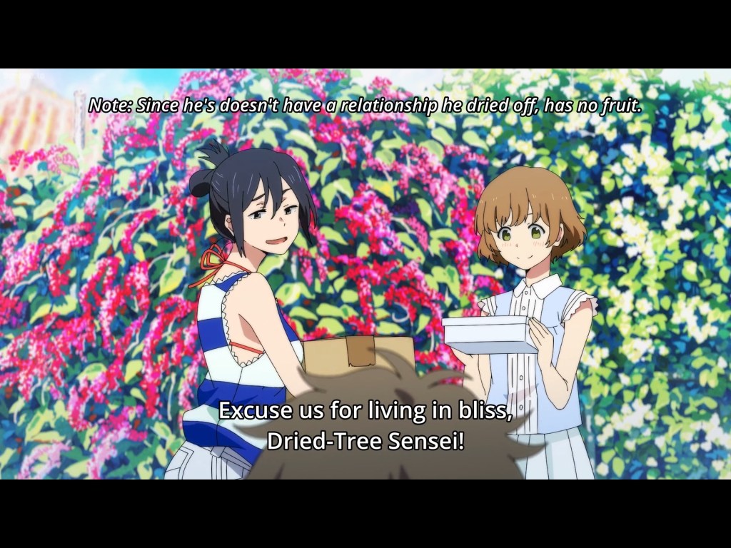 Now, this perception of the restaurant is skewed a bit when other characters become involved. For instance, there are two women who work in the restaurant too– Suzu and Eri. These women are in a romantic relationship, which breaks down Shun’s image of the “family” behind the family restaurant. This space, once perceived as heteronormative, is actually a queer one. The family restaurant occupies a shared space–not an exclusive one that tells audiences that one does not have to walk the straight path to be in the light and in the family.