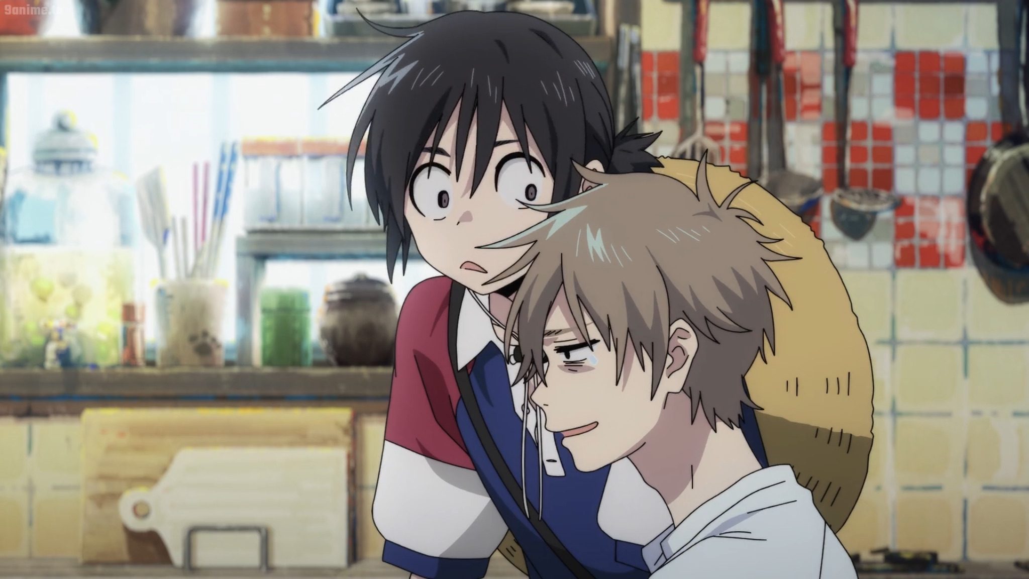 Or it also comes in a much more complex, societally-driven form as well. Shun, burdened with guilt, sees places as dominantly heteronormative, while Mio’s presence breaks that gilding and exposes their true queerness. For example, both boys work at a small family restaurant that has served islanders for years. As a family restaurant, Shun sees the restaurant as a nucleic symbol of the familial normativity he is not a part of. This ideology is showcased when Shun gets jealous of the women flirting with Mio on his first night working at the restaurant.