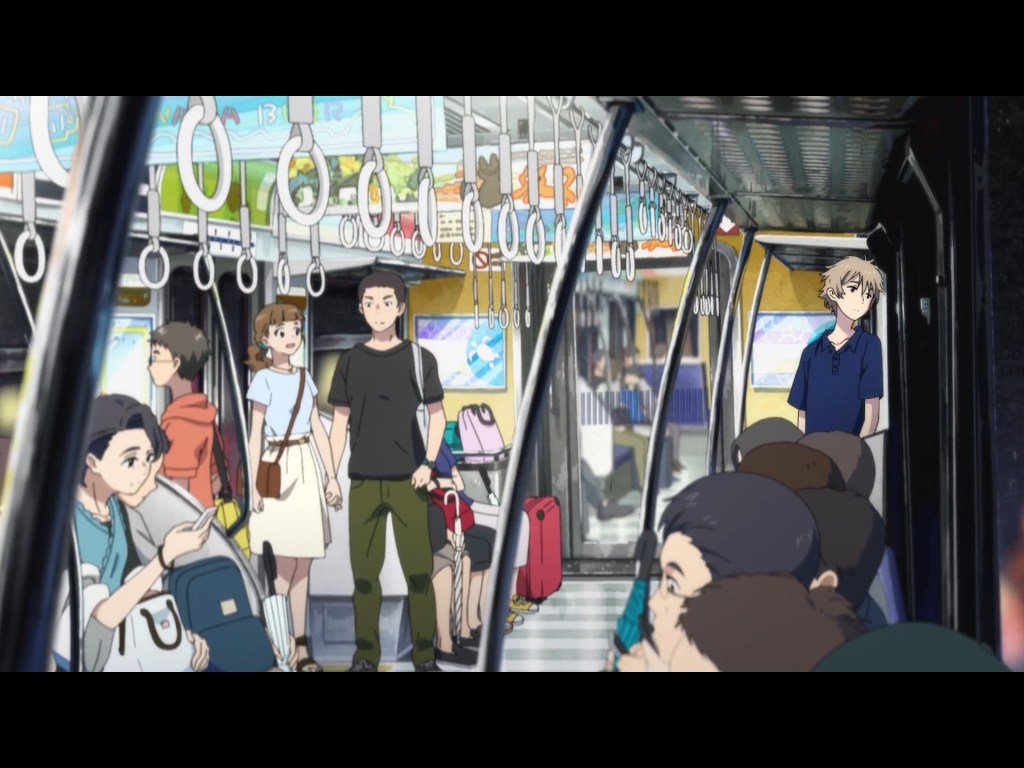 Another instance of these conflicting view points is when Shun and Mio visit the mainland; the city looks quite different to these seemingly similar men according to the background shots. When audiences look at what is surrounding Shun, the heteronormativity literally pops out; in one shot, there is a presumed male and female couple with their child and in another there are more heterosexual couples– the only single person is Shun.